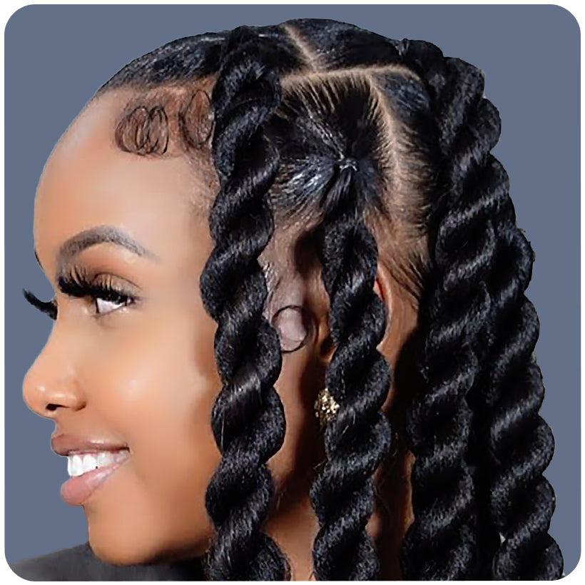 Embrace effortless texture and natural volume with Senegalese twists! These stunning two-strand twists are a protective style that offers a unique, rope-like appearance. Our stylists expertly craft Senegalese twists using braiding techniques and high-quality extensions that blend seamlessly with your natural hair.